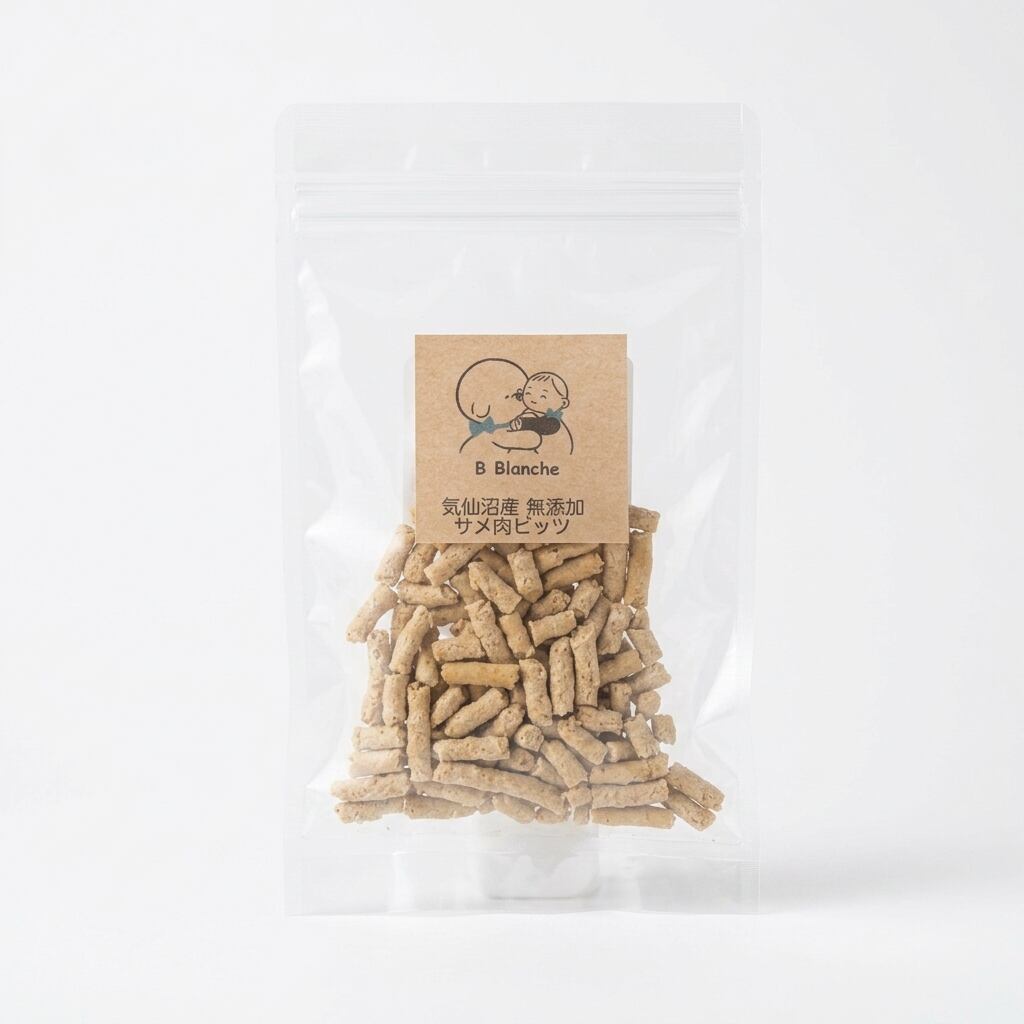 気仙沼産のサメ肉を使用した、無添加の犬用おやつです。